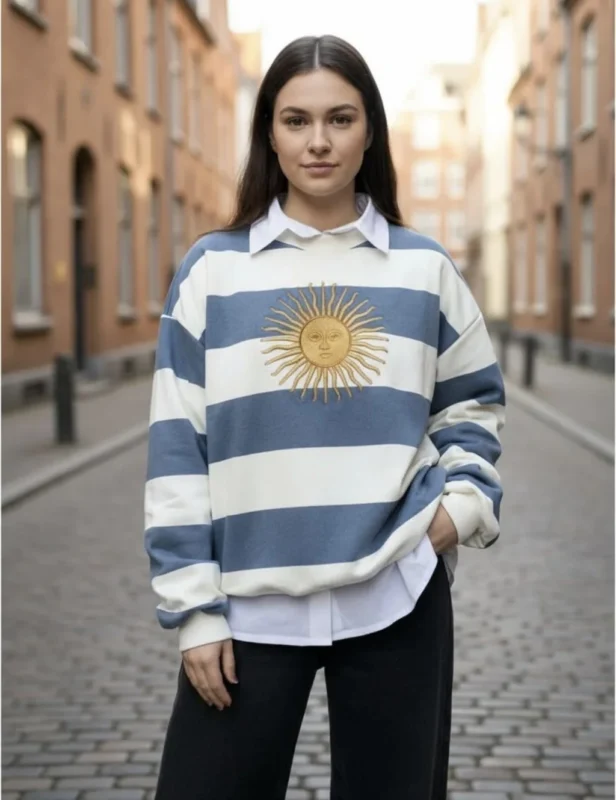 La clave de su popularidad reside en un diseño que combina identidad y moda. Estas prendas capturaron la atención de todos al incorporar de manera protagónica los colores de la bandera y el Sol de Mayo, elementos que simbolizan la unidad y la ilusión renovada.